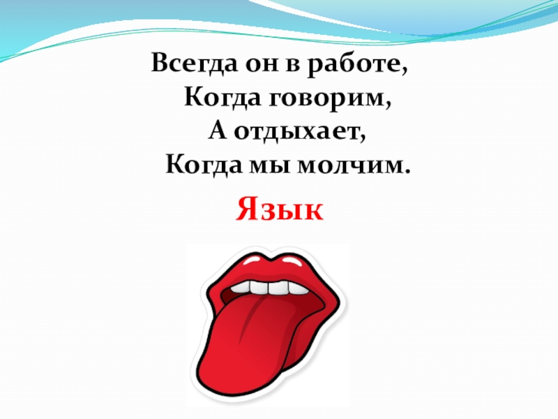Всегда он в работе, Когда говорим, А отдыхает, Когда мы молчим.Язык