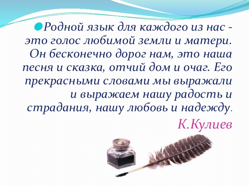Слайд 2Родной язык для каждого из нас - это голос любимой земли
