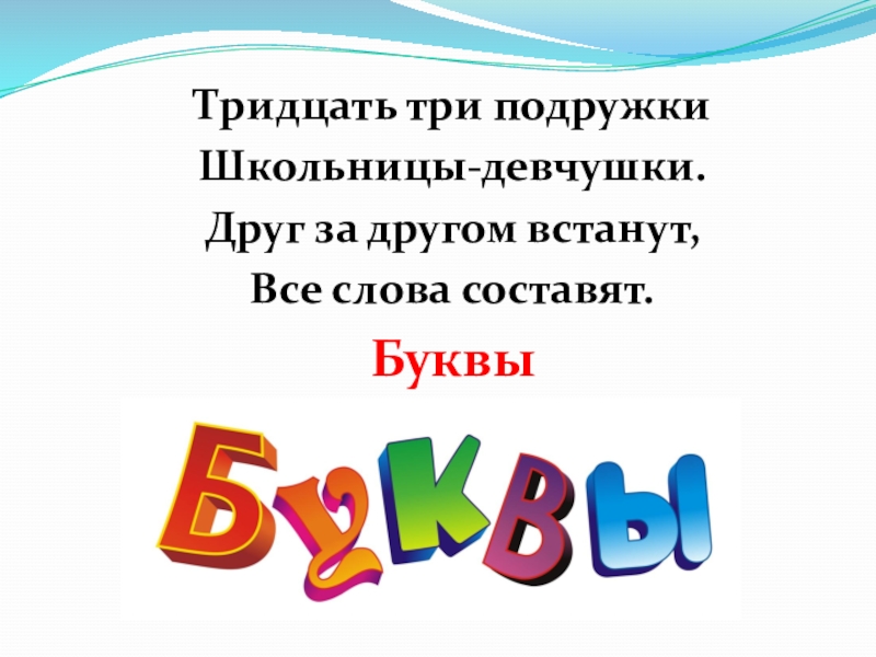Тридцать три подружкиШкольницы-девчушки.Друг за другом встанут,Все слова составят. Буквы