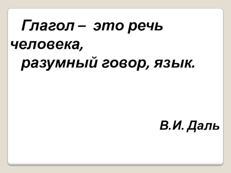 Глагол – это речь человека, разумный говор, язык.											В.И. Даль