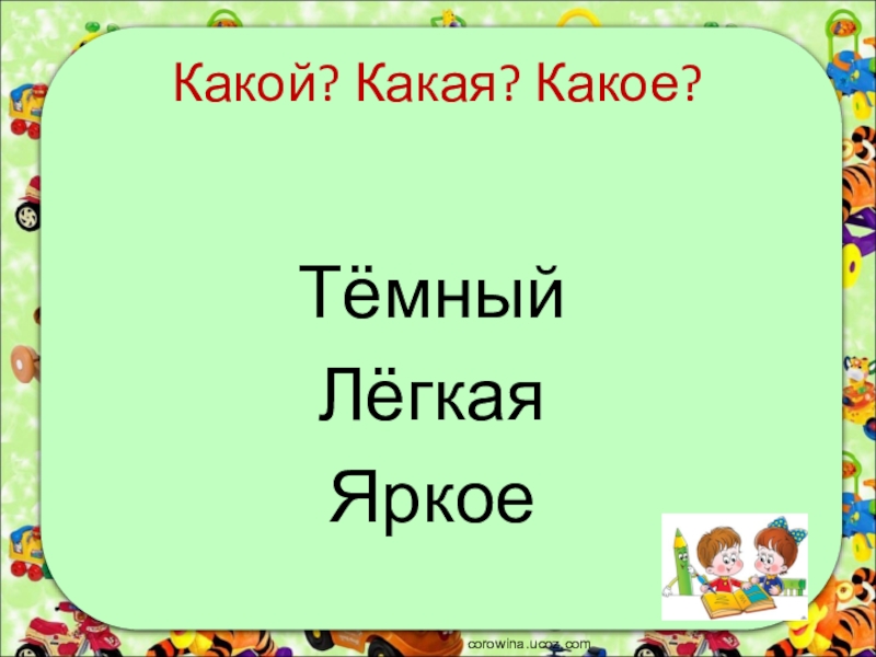Какой? Какая? Какое?ТёмныйЛёгкаяЯркоеcorowina.ucoz.com