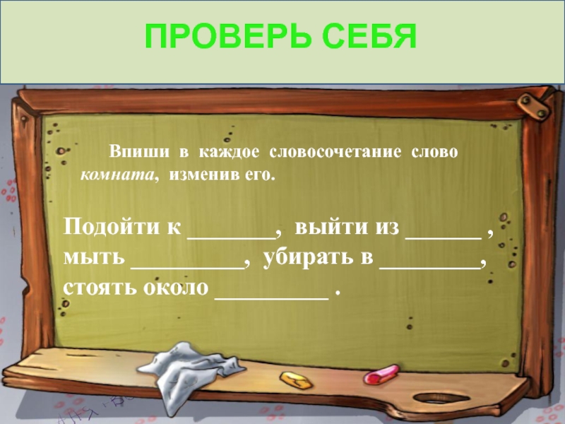 Впиши в каждое словосочетание слово комната, изменив его.