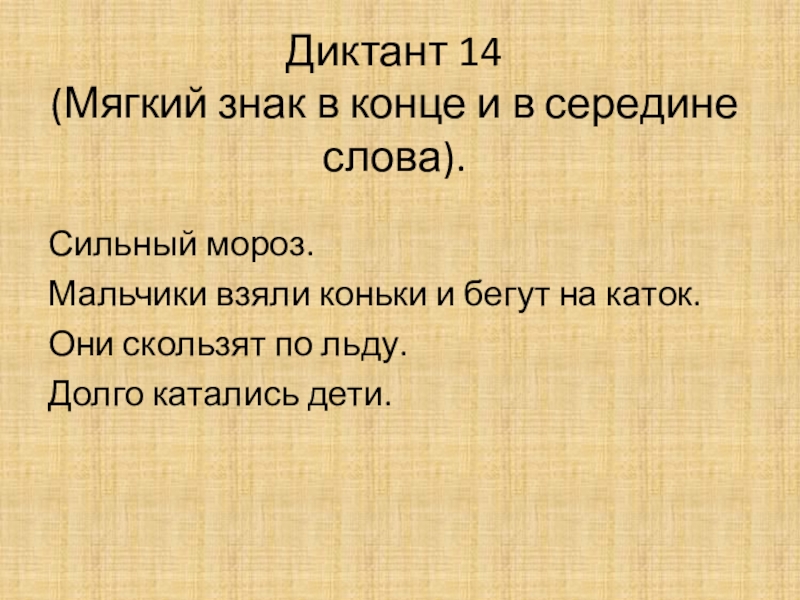 Слайд 13Диктант 14 (Мягкий знак в конце и в середине слова).