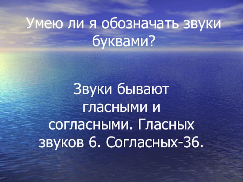 Умею ли я обозначать звуки буквами?Звуки бывают гласными и согласными. Гласных звуков 6. Согласных-36.