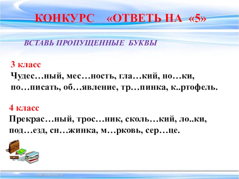 Прекрас…ный, трос…ник, сколь…кий, ло..ки, под…езд, сн…жинка, м…рковь, сер…це.