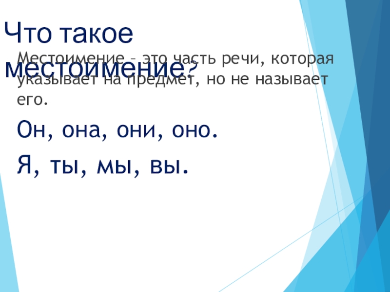 Местоимение – это часть речи, которая указывает на предмет,