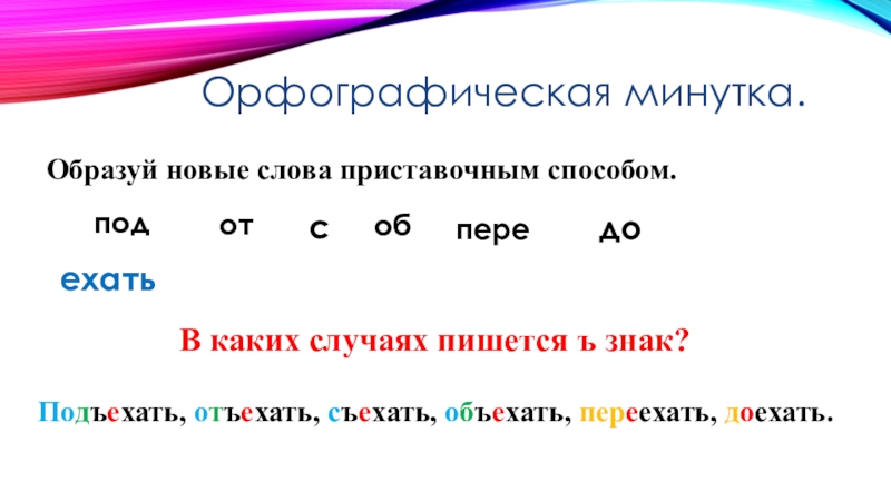 Подъехать, отъехать, съехать, объехать, переехать, доехать.