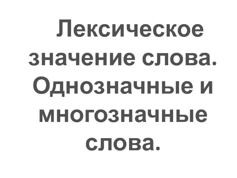 Презентация, доклад по русскому языкуЛексическое значение слова. Однозначные и многозначные слова.