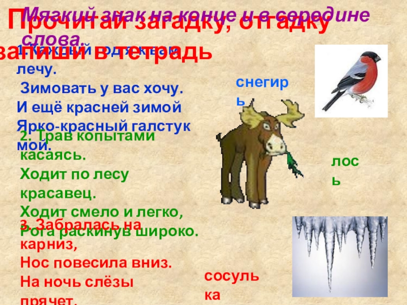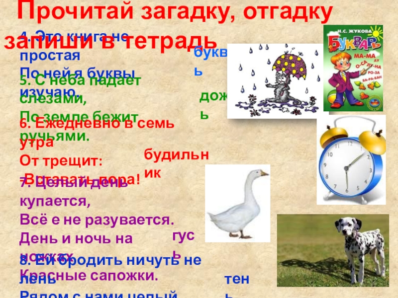Прочитай загадку, отгадку запиши в тетрадь