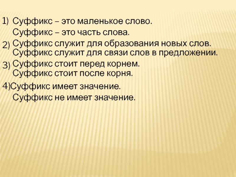 Суффикс служит для связи слов в предложении.