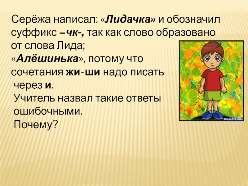 Суффикс стоит после корня.