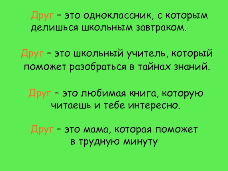 Друг – это любимая книга, которую читаешь и тебе интересно.