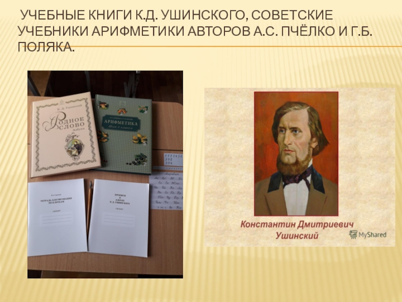Слайд 3 Учебные книги К.Д. Ушинского, советские учебники Арифметики авторов А.С. Пчёлко