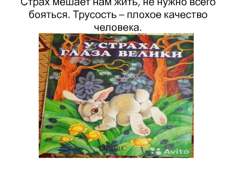 Слайд 9Страх мешает нам жить, не нужно всего бояться. Трусость – плохое