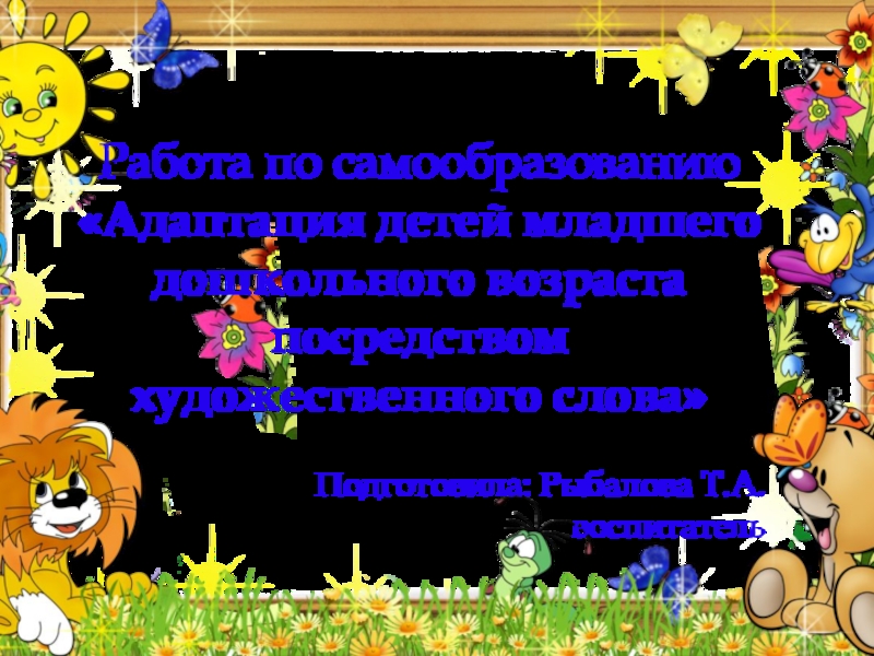 Работа по самообразованию«Адаптация детей младшего дошкольного возраста посредством художественного слова»Подготовила: Рыбалова Т.А.воспитатель