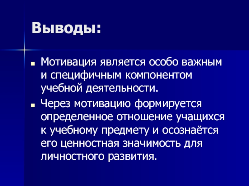 Мотивация является особо важным и специфичным компонентом учебной деятельности.