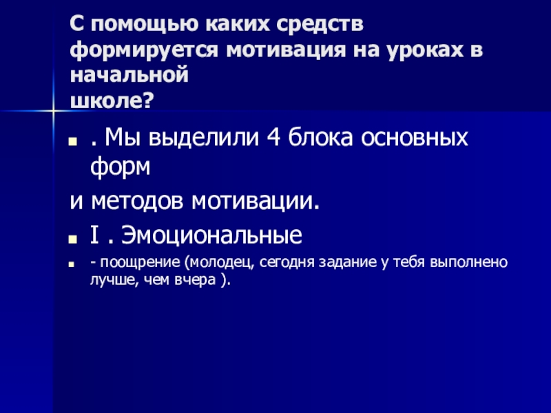 Слайд 11С помощью каких средств формируется мотивация на уроках в начальной