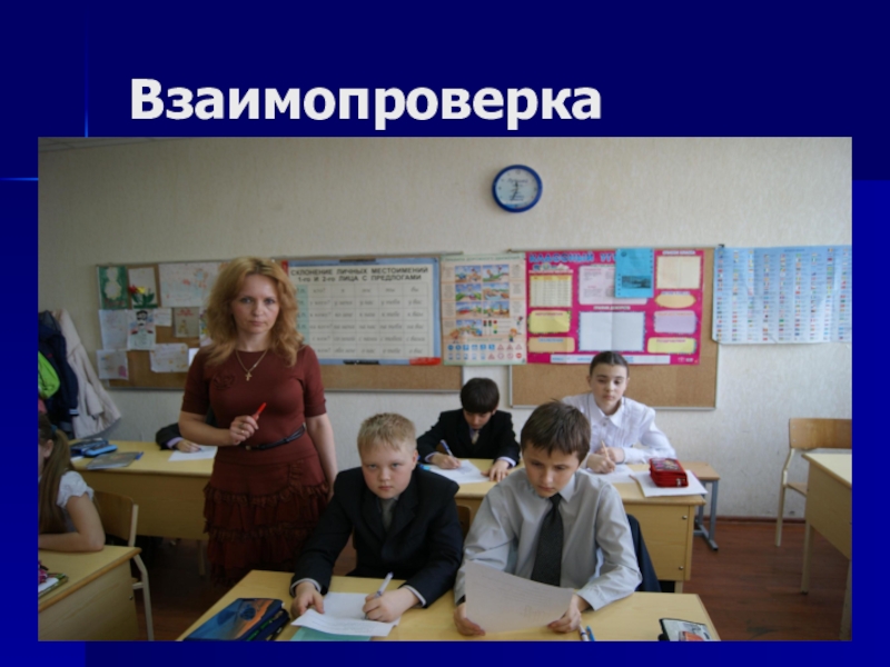 - взаимопроверка («Вы решили задачу? А теперь обменяйтесь тетрадями и