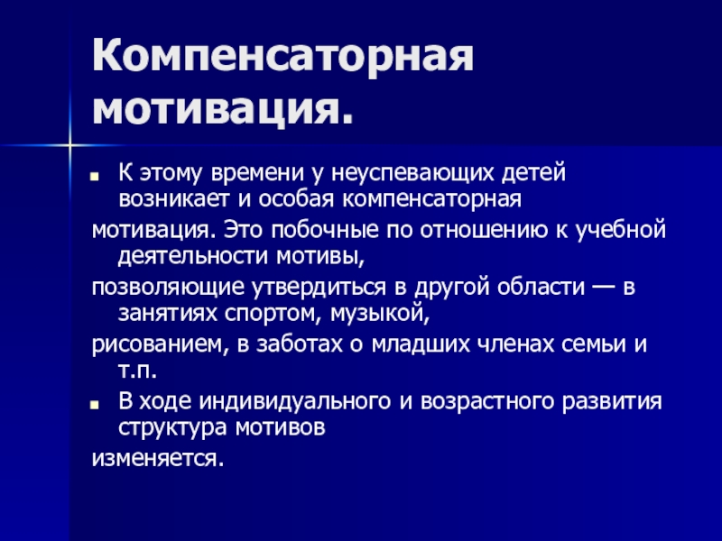 Слайд 10Компенсаторная мотивация.
