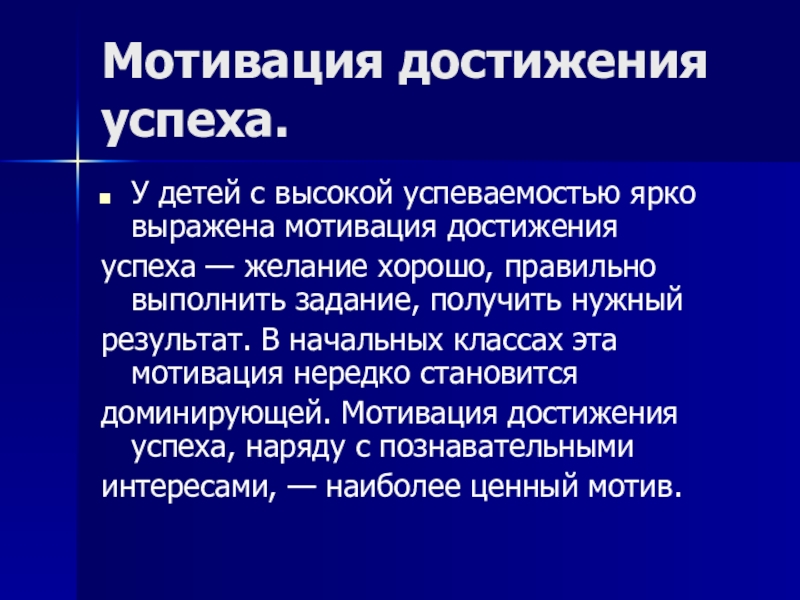 У детей с высокой успеваемостью ярко выражена мотивация достижения