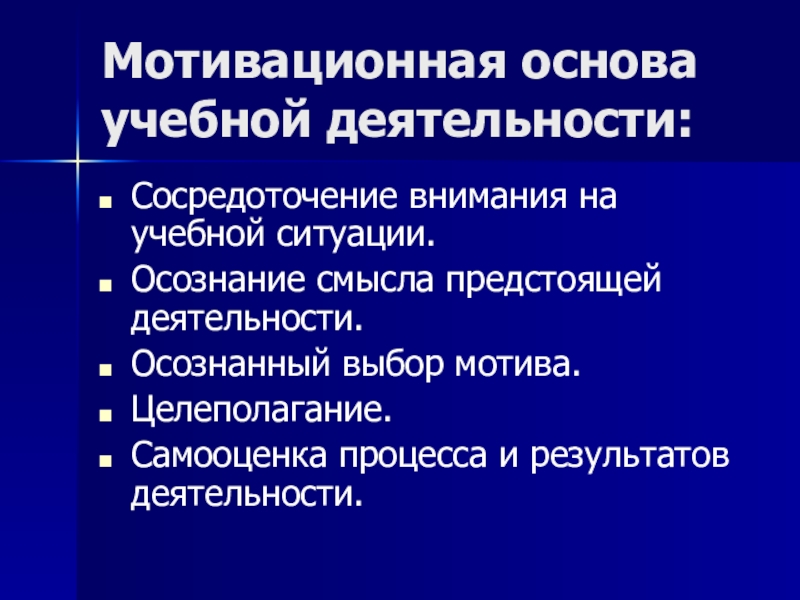 Слайд 5Мотивационная основа учебной деятельности: