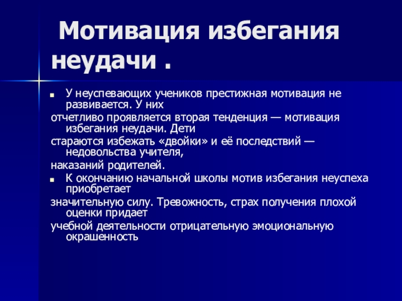 Слайд 9 Мотивация избегания неудачи .