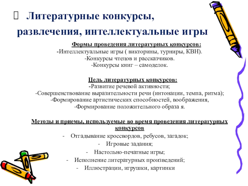 Методы и приемы, используемые во время проведения литературных конкурсов