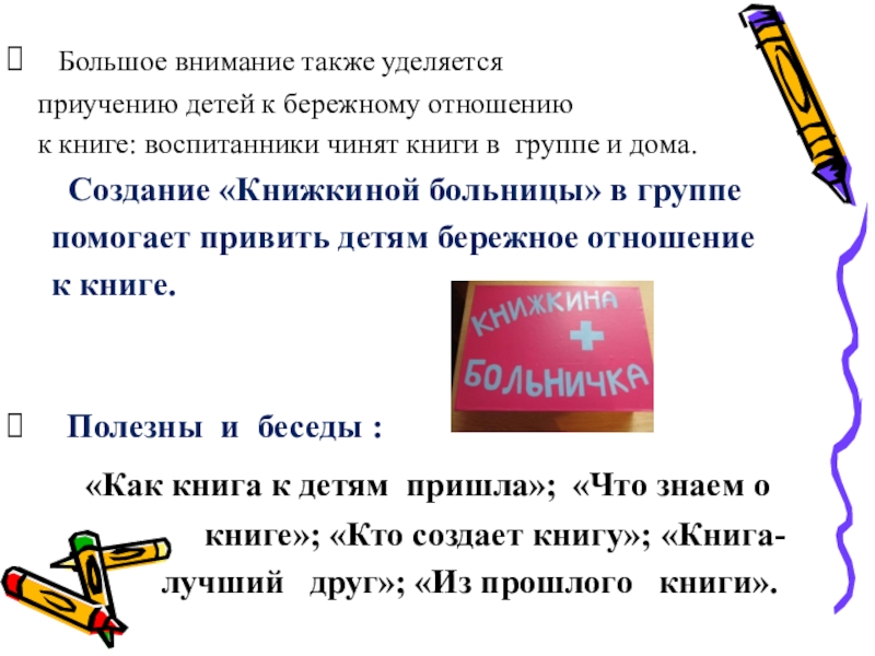 к книге: воспитанники чинят книги в группе и дома.