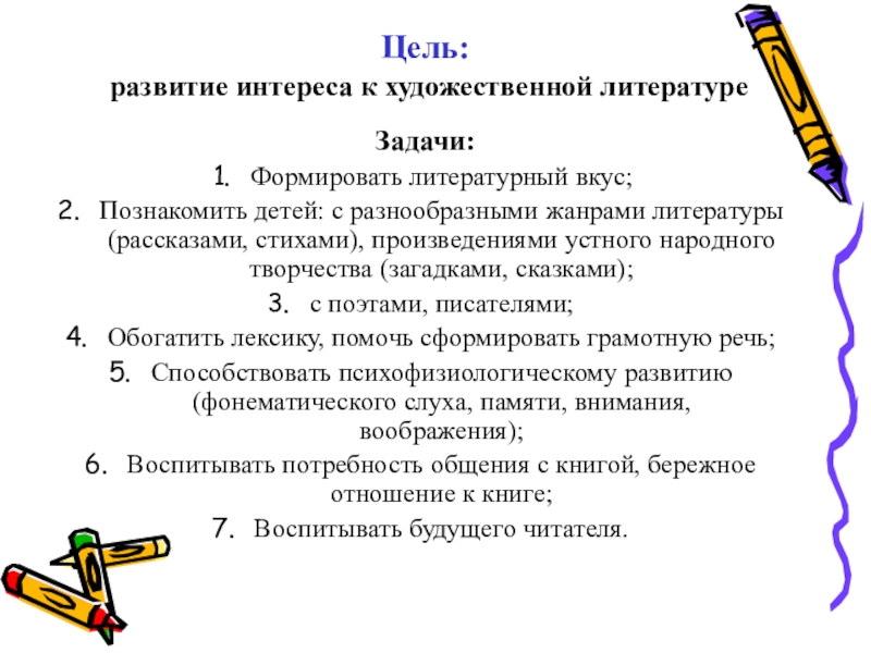развитие интереса к художественной литературе