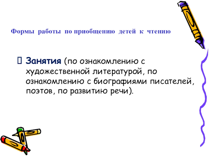 Слайд 9Формы работы по приобщению детей к чтению