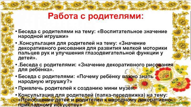 .Беседа с родителями: «Значение декоративного рисования для ребёнка».