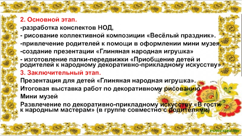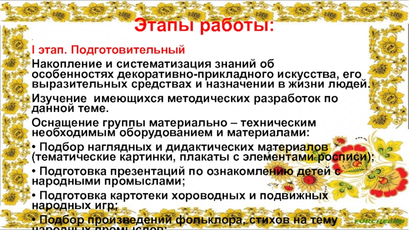 • Подготовка презентаций по ознакомлению детей с народными промыслами;