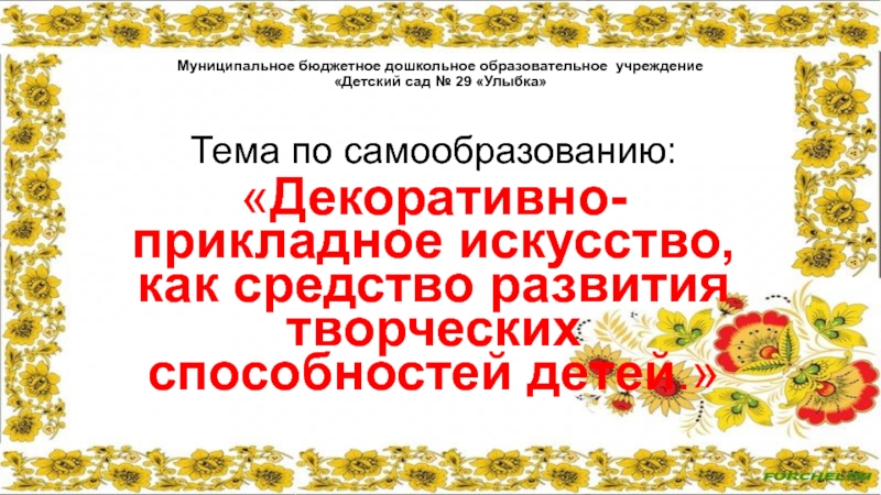 Анкетирование родителей показало, что не всегда в современных семьях уделяется должное внимание развитию народного декоративного искусства детей. Поэтому передо мной встала необходимость работы над данной проблемой.