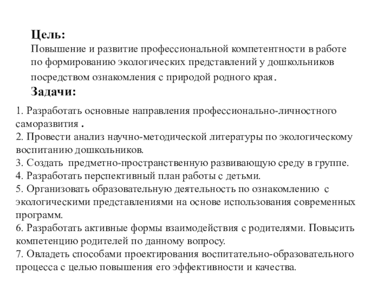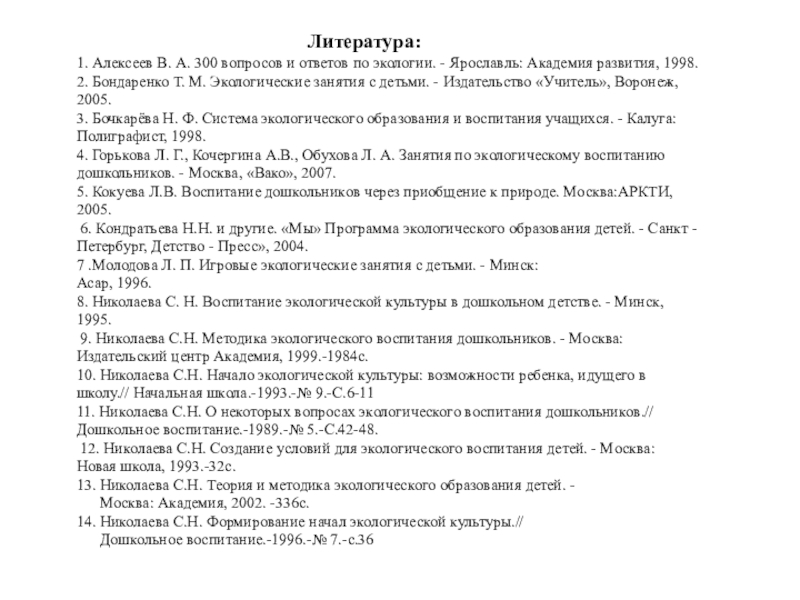 2. Провести анализ научно-методической литературы по экологическому воспитанию дошкольников.