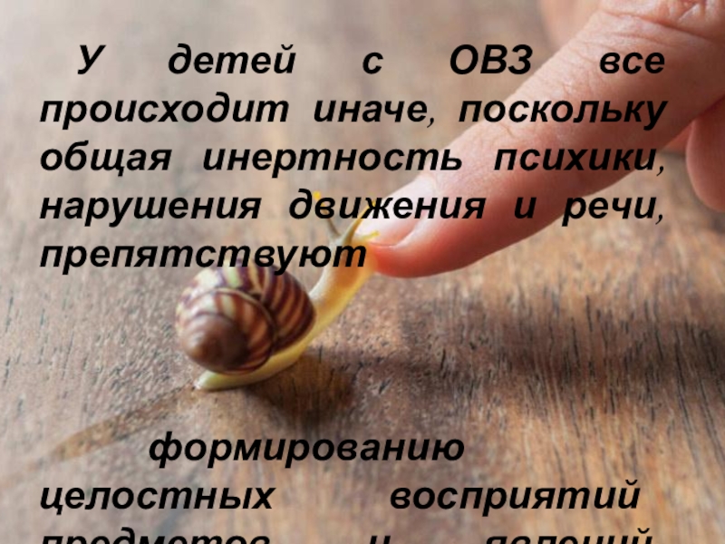 Слайд 4 У детей с ОВЗ все происходит иначе, поскольку общая инертность психики,
