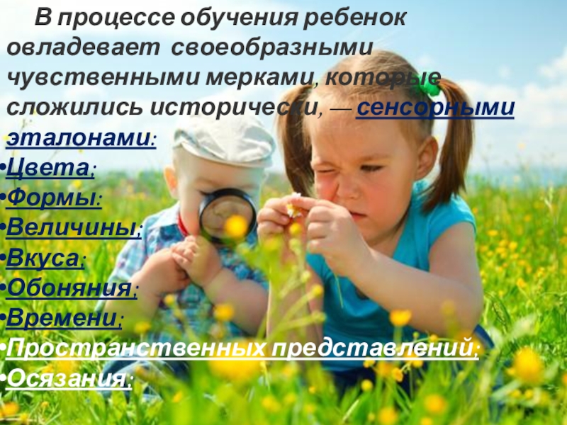 В процессе обучения ребенок овладевает своеобразными чувственными мерками, которые сложились исторически,