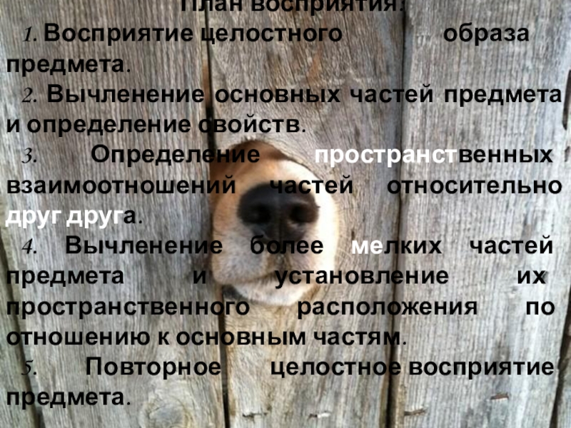 4. Вычленение более мелких частей предмета и установление их пространственного расположения по отношению к основным частям.