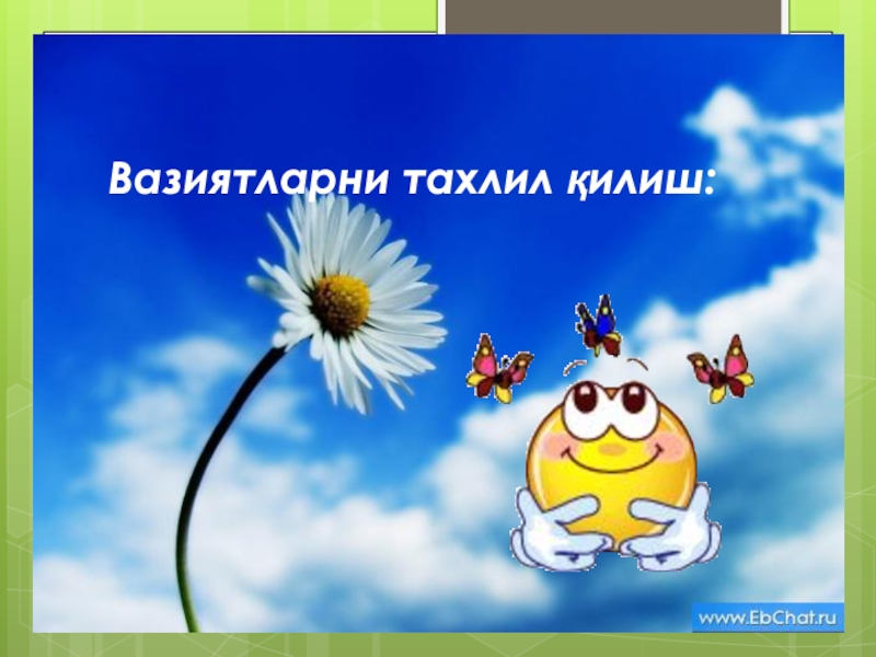 Слайд 9Вазиятларни тахлил қилиш:
