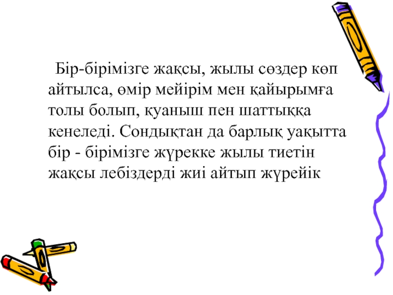 Бір-бірімізге жақсы, жылы сөздер көп айтылса, өмір мейірім мен қайырымға толы болып, қуаныш пен