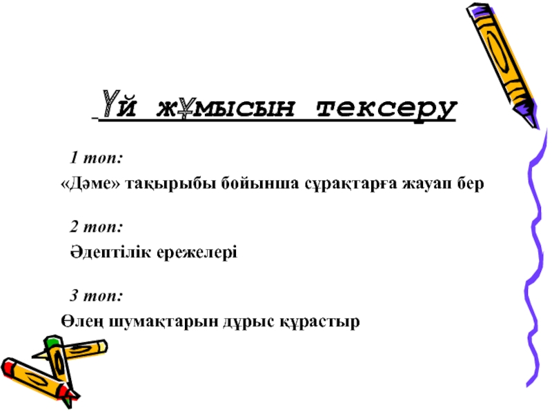 Слайд 4 Үй жұмысын тексеру