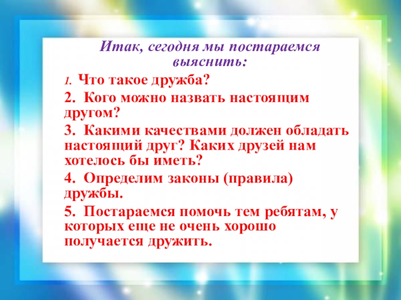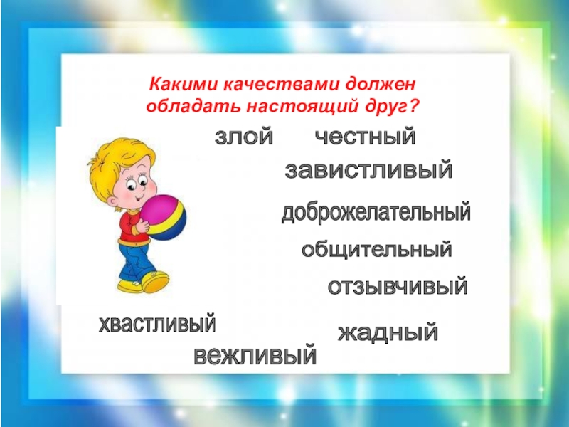 Подумайте какие слова связаны с этим словом, без чего не может быть дружба
