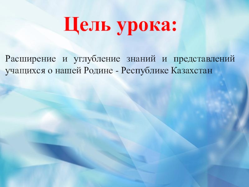Цель урока: 	Расширение и углубление знаний и представлений учащихся о нашей Родине - Республике Казахстан