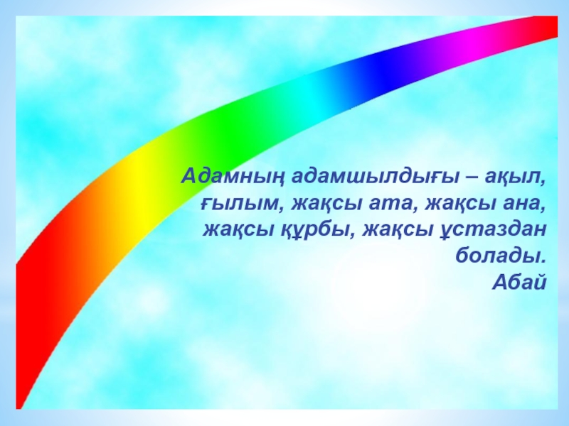 Адамның адамшылдығы – ақыл,ғылым, жақсы ата, жақсы ана, жақсы құрбы, жақсы ұстаздан болады. Абай