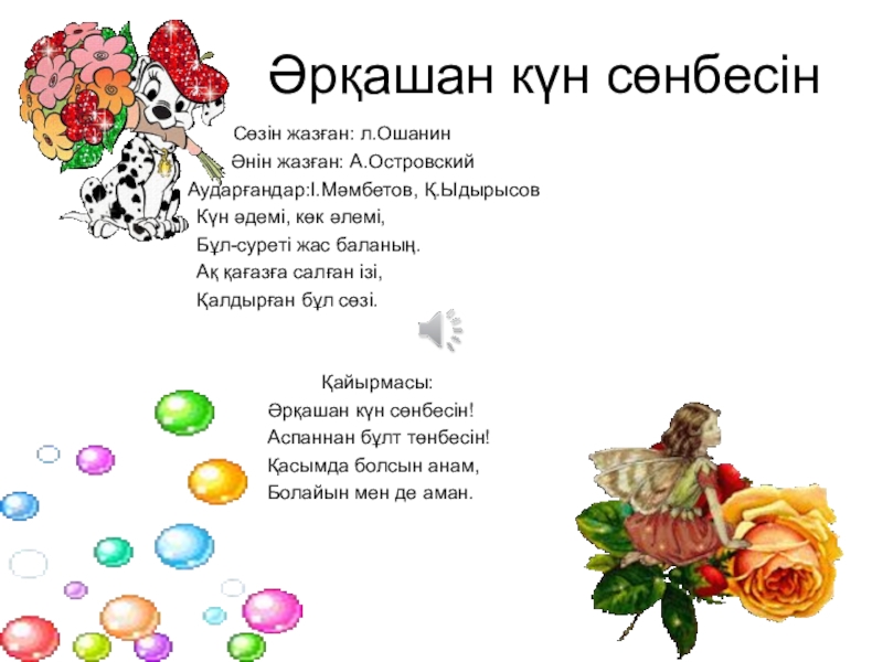 Ә ң г і м е л е уКүн мен гүлдер.Қ.Толыбаев