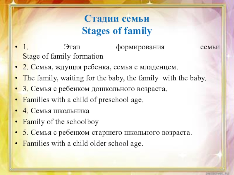 Дальнейшее развитие взаимоотношений в семье (открытость,