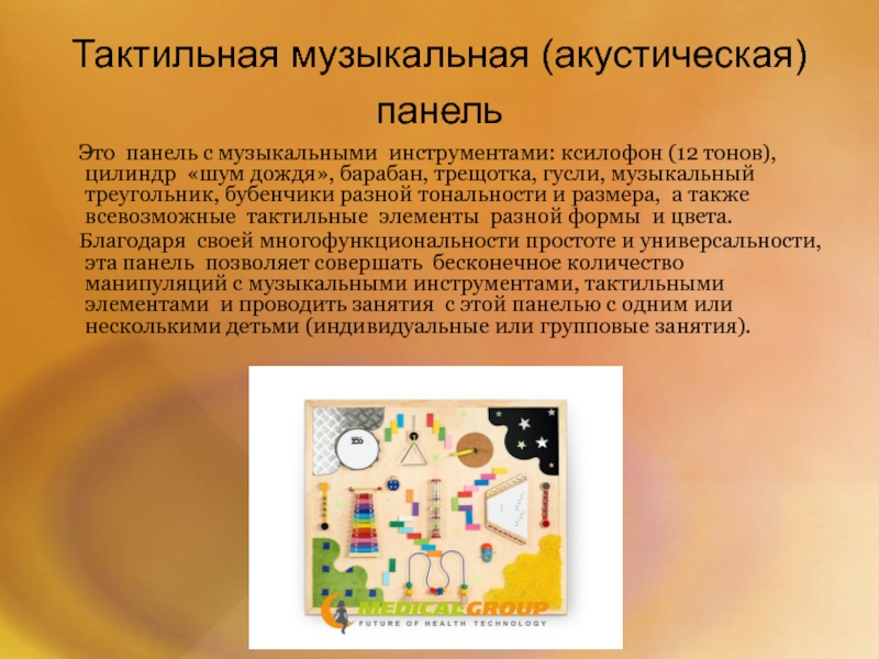 Слайд 14Тактильная музыкальная (акустическая) панель