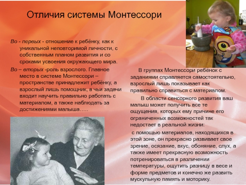 Слайд 3Отличия системы Монтессори