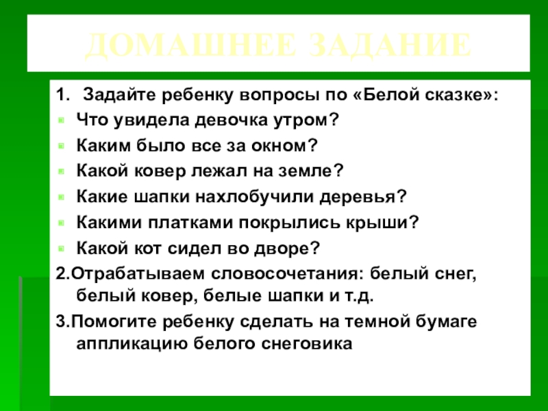 1. Побеседуйте с ребенком о новой сказке. Задайте вопросы: