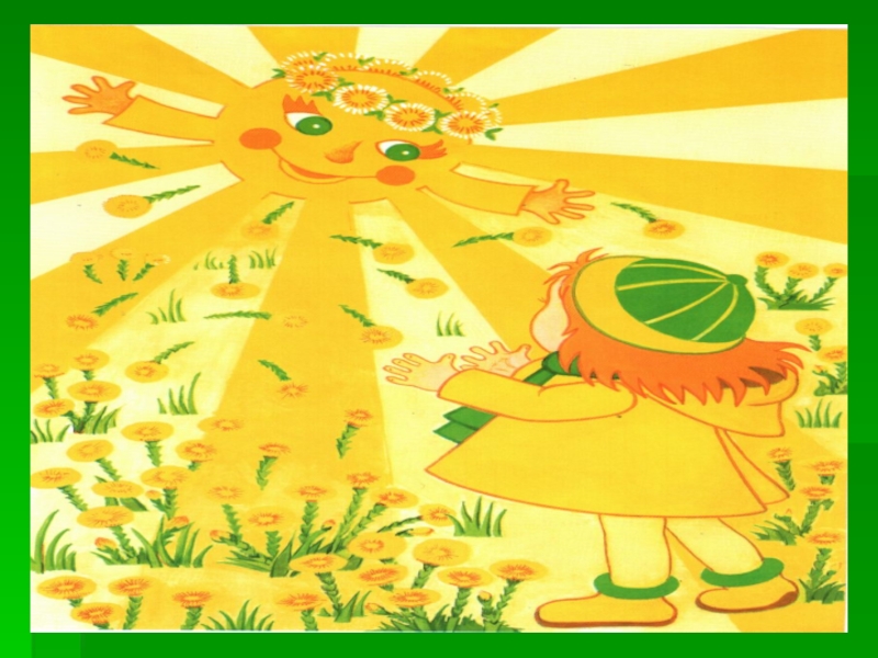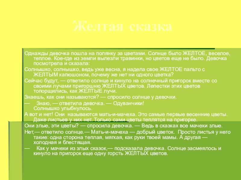 Однажды девочка пошла на полянку за цветами. Солнце было ЖЕЛТОЕ,