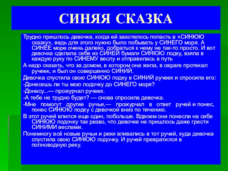 Слайд 28ГОЛУБАЯ СКАЗКА